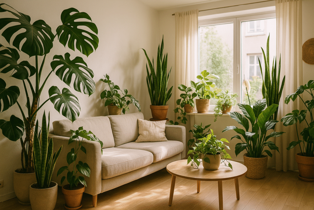 - Dormitorios: sansevieria, potus, espatifilo, por su capacidad de purificar el aire.